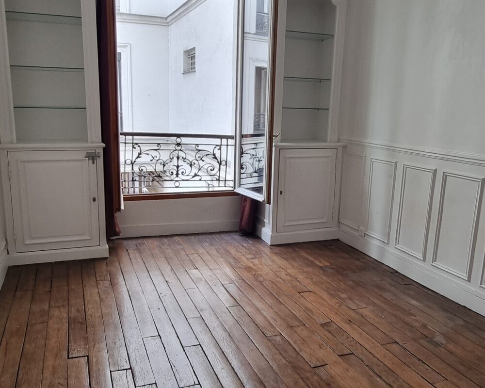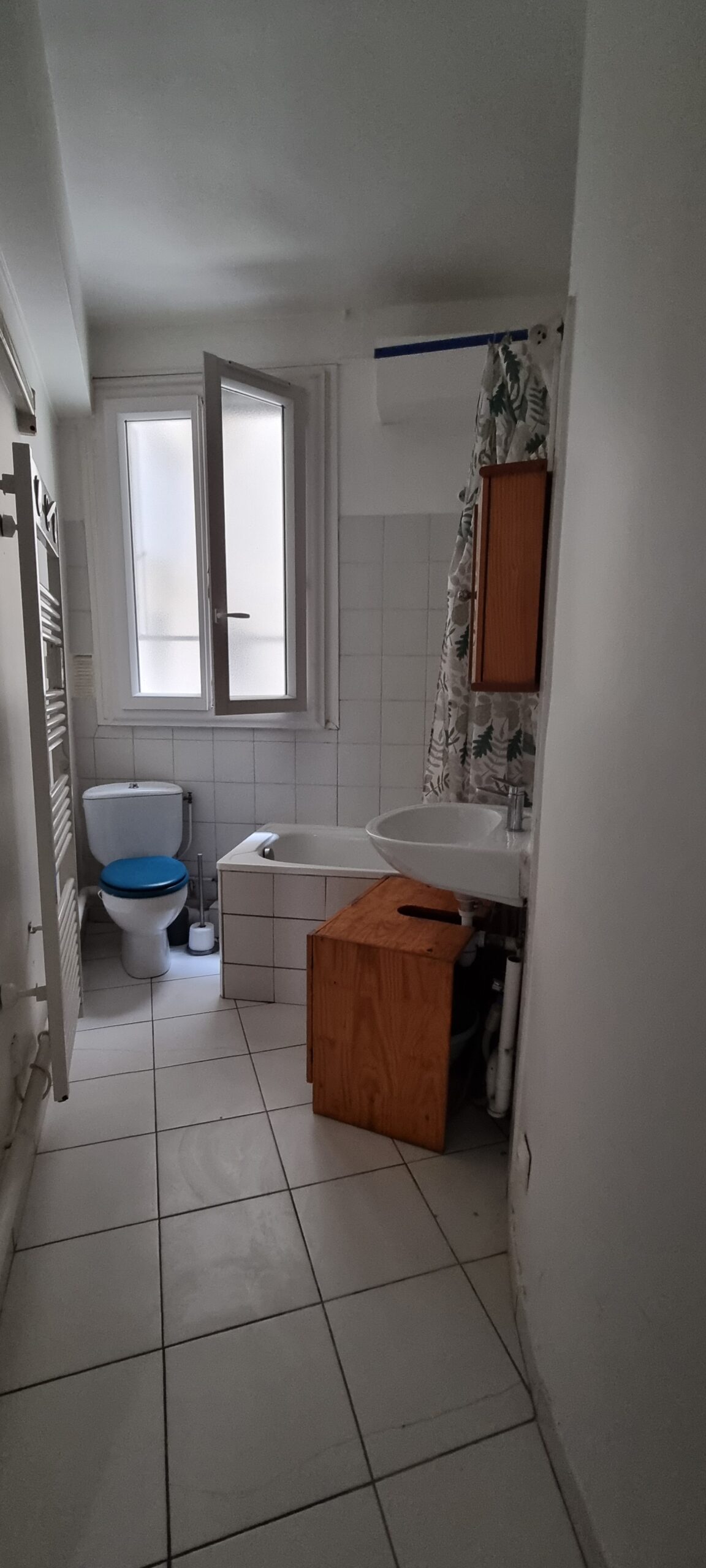 Au 1er étage sur cour, appartement de type 2 pièces comprenant une entrée, une pièce à vivre avec cuisine, une chambre et une salle de bains avec WC.